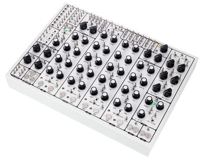 Zu den weiteren Funktionen gehören ein Echtzeit loop-Recorder pro Instrument, ein Master Clock Generator mit 7 Clock-Divider Ausgängen, ein Zufallsgenerator sowie ein synchronisierbarer LFO mit verschiedenen Ausgangsoptionen. Darüber hinaus gibt es Signalabschwächer, VCAs, Inverter und Schalter für flexible Sounddesign-Möglichkeiten.