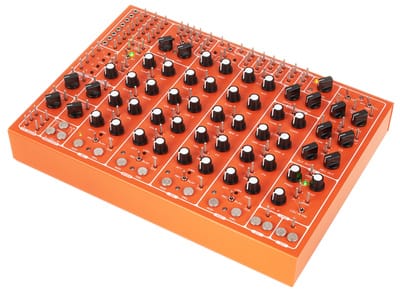 En plus des instruments analogiques, le SOMA Pulsar-23 Orange propose un enregistreur de boucle en temps réel, un générateur d’horloge maître avec 7 sorties de diviseur d’horloge, un générateur aléatoire, un LFO synchronisable avec différentes formes d’ondes et bien plus encore. Vous pouvez également profiter des atténuateurs de signal librement assignables, des VCAs assignables et du processeur d’effets 2 canaux avec Delay et Reverb pour enrichir votre son.